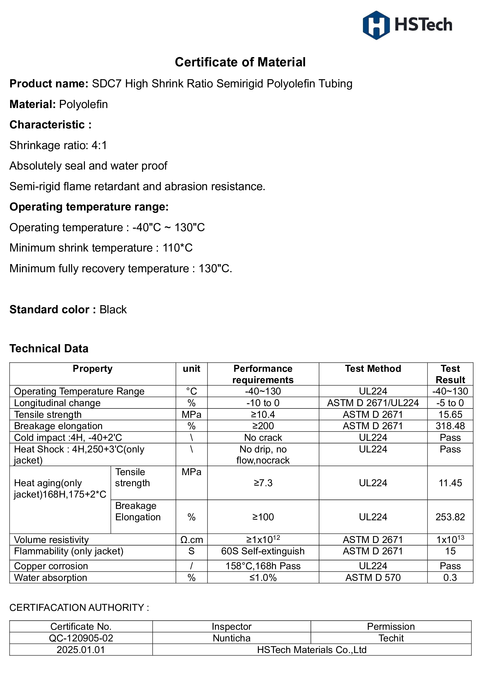 HSTech Materials Co., Ltd.is a general heat shrink tubing company. Founded in 2002, research and development Production of general heat shrink tubing materials non-heat pipe Marking type pipes medical heat shrink tubing Insulation insulation, other types of pipes, we have technical personnel, reliable R&D team and provide you with the best service quickly.
