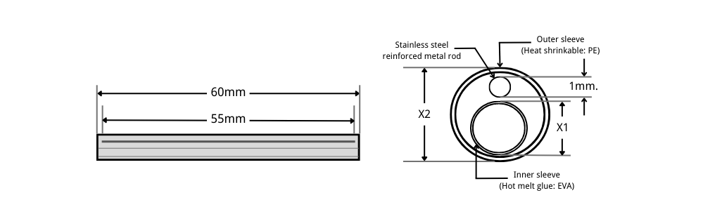 • ปลอกหุ้มหดด้วยความร้อนที่ยืดหยุ่นพร้อมกาวร้อนละลายด้านใน